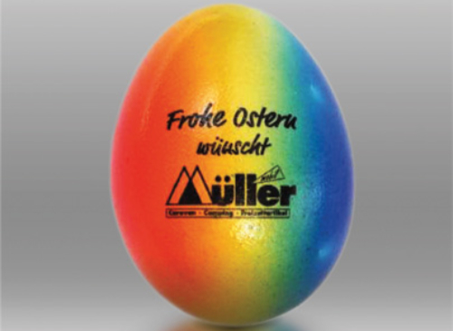 Osterzeit ist Werbezeit. Wünschen Sie Ihren Kunden, Geschäftsfreunden und Lieferanten „frohe Ostern“ mit fröhlich bunten, individuell bedruckten Ostereiern.