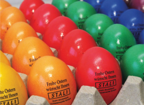 Wir bedrucken seit vielen Jahren Logo-Eier individuell nach Ihren Wünschen!